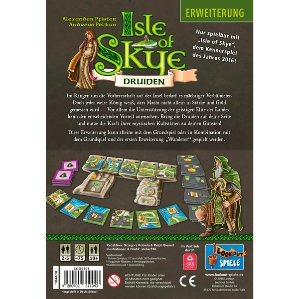Mit dieser zweiten Erweiterung für das Strategiespiel Isle of Skye greift die geistige Elite in den Kampf um die Vorherrschaft auf der Insel ein. Durch die Druiden wird die Macht der mystischen Kultstätten beim Kampf um den Thron nutzbar. Die durch die Steintafeln verliehenen Sondereffekte können dabei den entscheidenden Unterschied machen. Art.-Nr.: 1902309