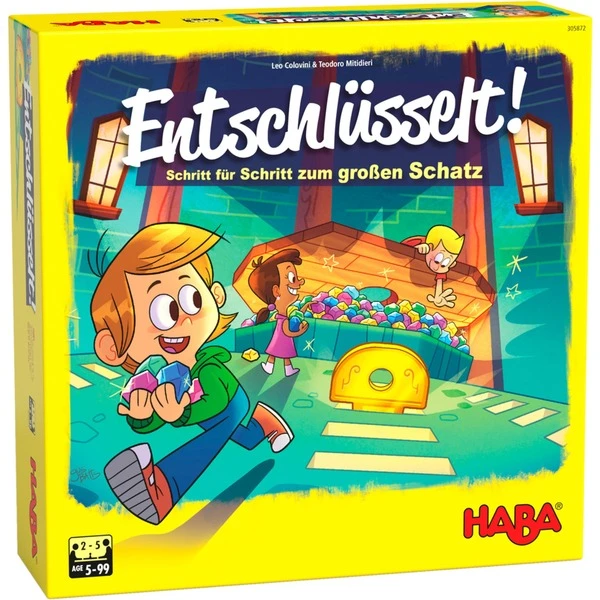 Nervenkitzel pur bietet das HABA Spiel „Entschlüsselt – Schritt für Schritt zum großen Schatz“. Die Spieler stecken dabei goldene Schlüssel in den Spielplan. Richtig eingesetzt, öffnet sich die Schatzkammer und es winken kostbare, wunderschön funkelnde Edelsteine. Jeder weitere Zug lässt die Spieler entweder reicher werden, oder alles verlieren. Wer die meisten Edelsteine sammelt, gewinnt am Ende. „Entschlüsselt – Schritt für Schritt zum großen Schatz“ von HABA ist unvorhersehbar und spannend bis zum Schluss, denn die Laufstrecken für die Schatzjäger sind immer wieder anders und erhöhen den Wiederspiel-Reiz.Art.-Nr.: 1678949