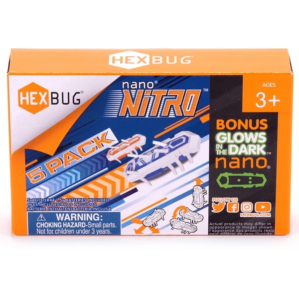Willkommen bei der nächsten Generation von HEXBUG nano – nun mit de, Vollgas-Kick! HEXBUG nano Nitro klettert Röhren hinauf, um Ecken herum und über den Boden und ist dabei schneller als je zuvor. Dieses 5er-Set enthält insgesamt 5 HEXBUG Nano Nitro – einer davon leuchtet im Dunkeln!Art.-Nr.: 100008402